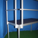 Räcken till podie/scengolv är ofta ett krav vid bygghöjder på 50 cm eller mer. Men även vid lägre höjd ger de en säker lösning. De finns som standard i 1 eller 2 meters längd. De monteras enkelt i alla scengolv.
