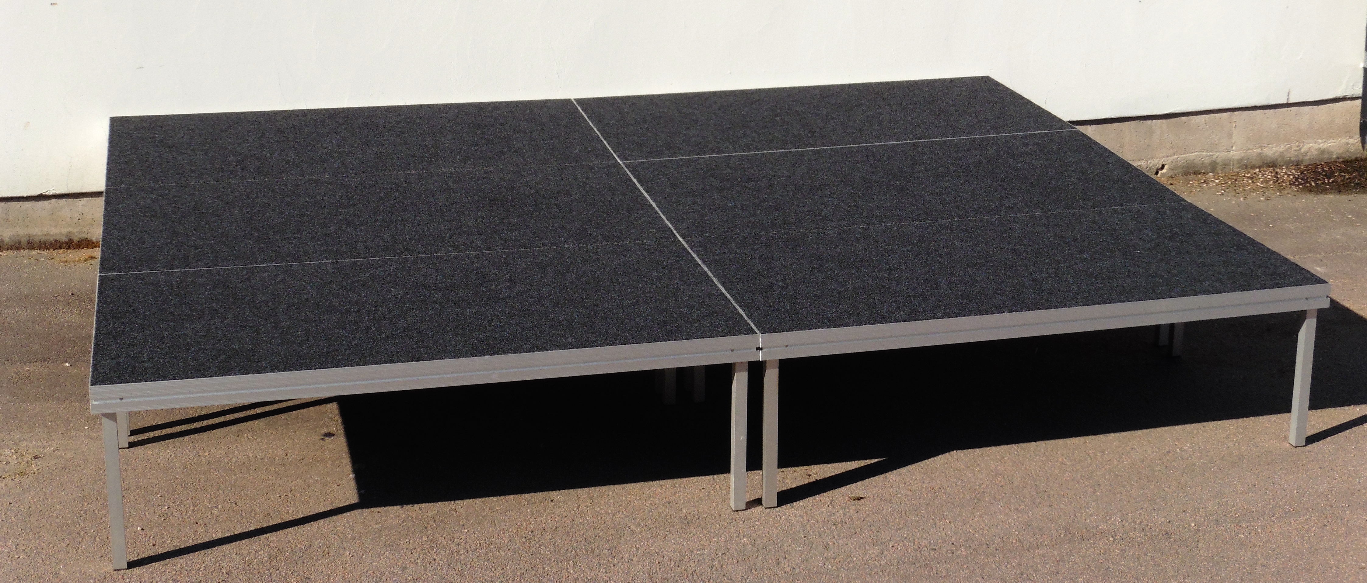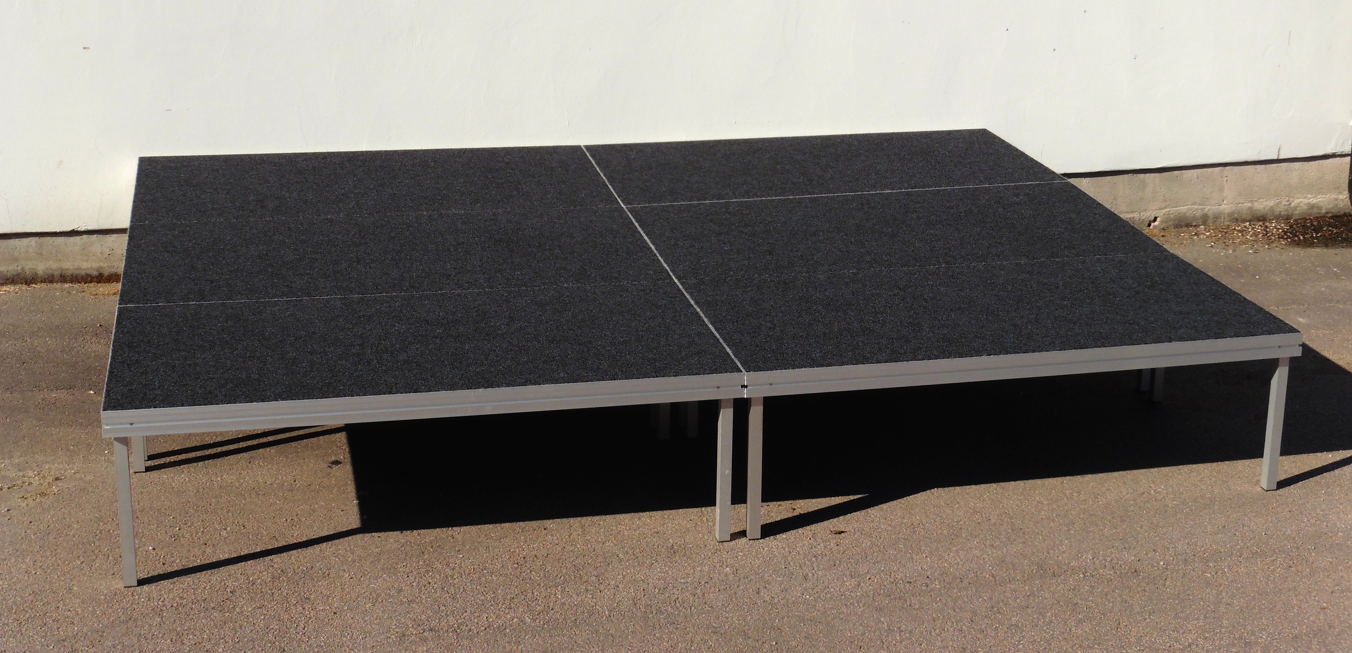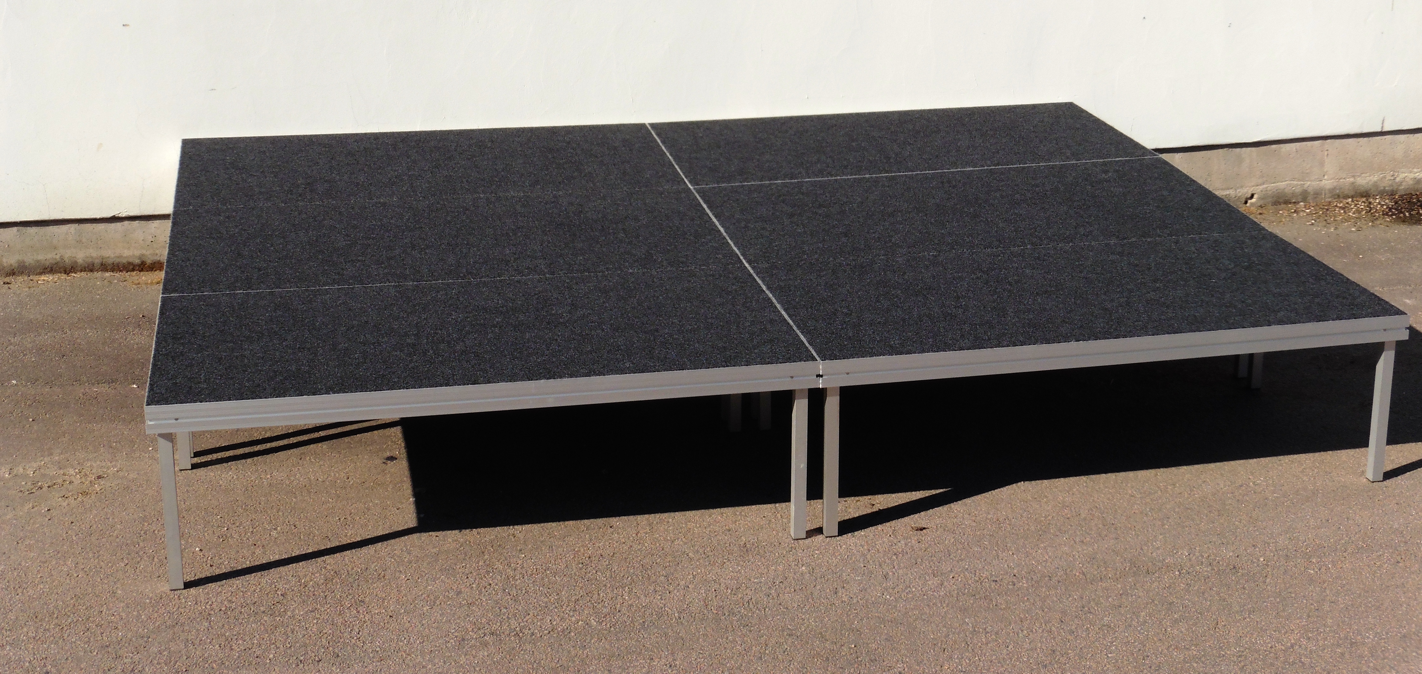 Podierna kan beläggas med olika typer av mattor. Nålfilt, gummi eller PVC. Antingen i plattor, vilka lägges på och punkttejpas, eller helt integrerade och hellimmade i podierna.