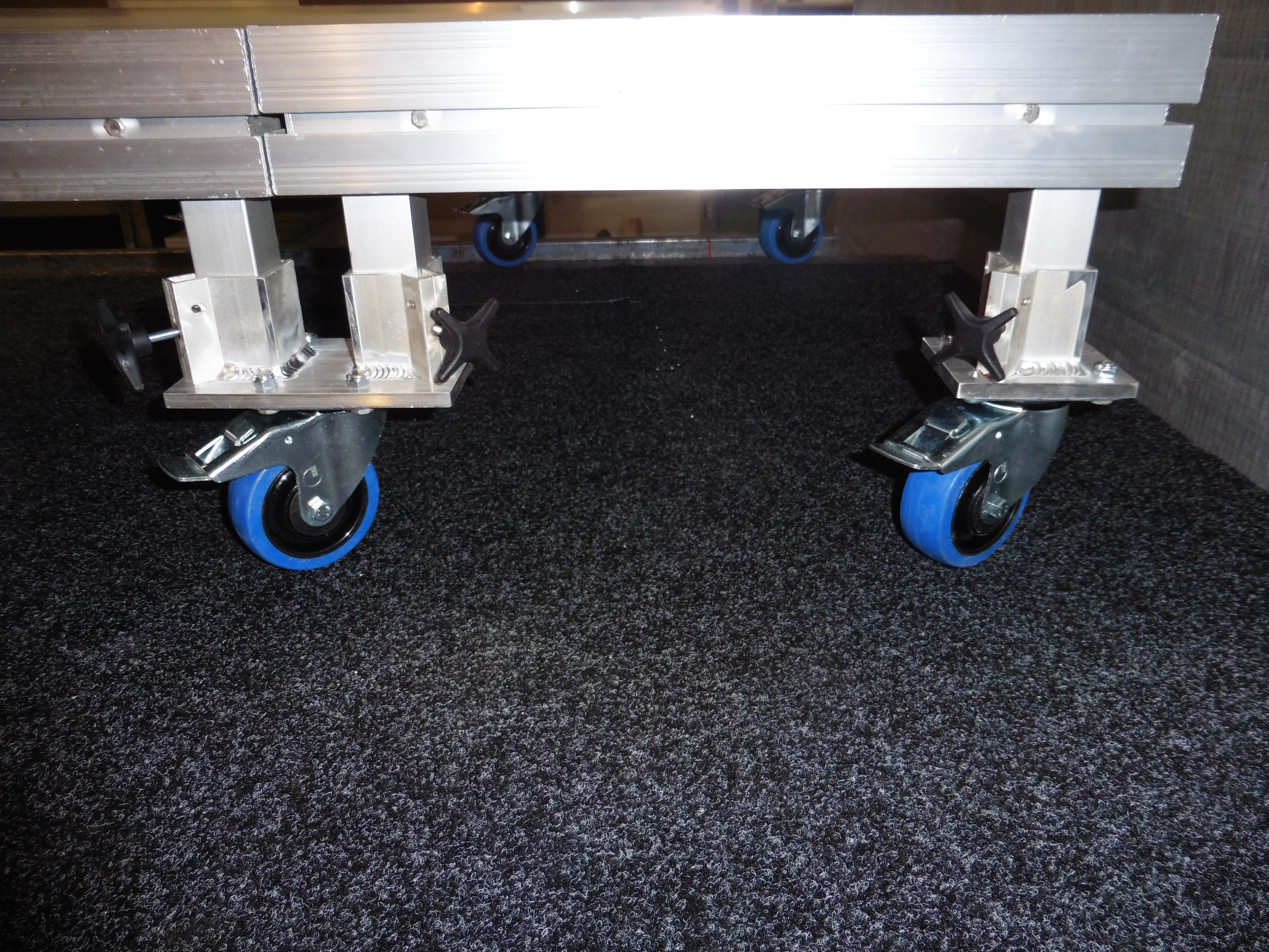 Med våra tillbehörshjul kan du göra ett par vanliga podier till ett rullpodie. Bilden visar ett 40cm hjulset.