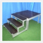 Denna trappa med tre steg är en av våra storsäljare. Den passar till höjderna 60 + 80 cm. Den är dels liten i formatet och relativt lätt, men otroligt stabil. Den förses enkelt med räcke i ena eller båda sidor. Räckena säljes separat.